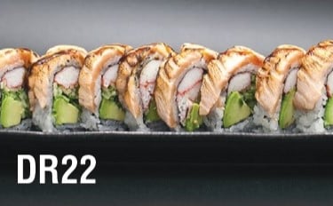 Classic California roll topped with melt-in-your-mouth torched salmon, finished with a hint of flame-kissed flavor