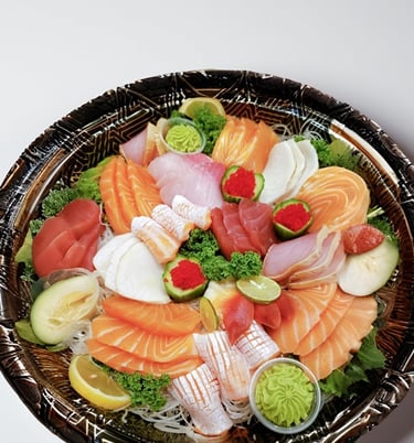 A premium selection of 50 pieces of sushi and sashimi, featuring the freshest cuts of fish, artfully plated for an unforgettable dining experience